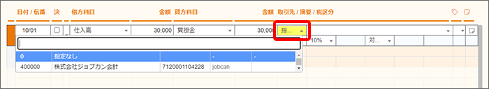 相手方の氏名または名称については、仕訳入力時に取引先を選択して対応します。